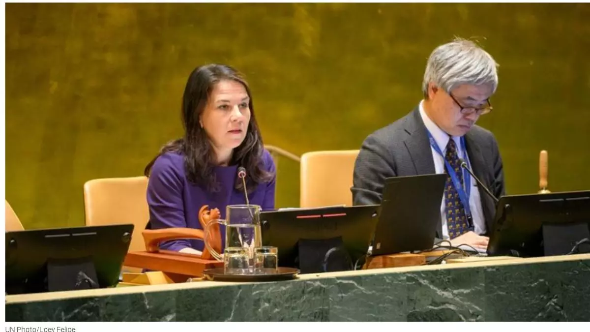UNGA President Annalena Baerbock and Security Council President Michael Imran Kanu (UN Photo/Loey Felipe)